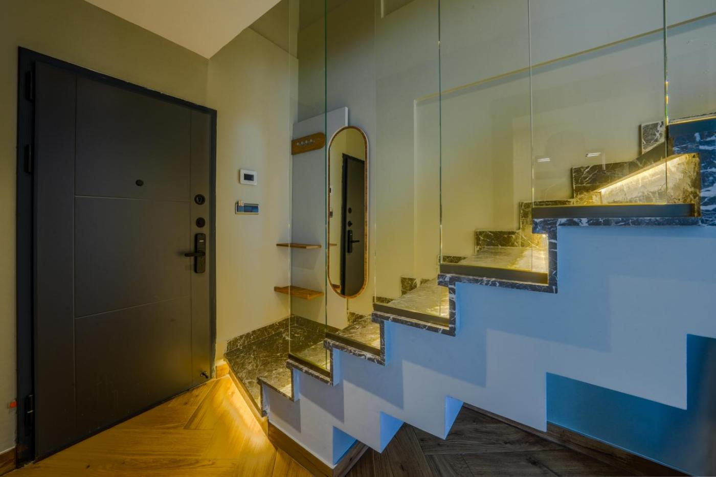 Duplex Apartment. This spacious apartment comes with 1 living room, 1 separate bedroom and 1 bathroom with a shower and free toiletries. The well-fitted kitchen has a stovetop, a refrigerator, a dishwasher and kitchenware. The air-conditioned apartment features a flat-screen TV with streaming services, a washing machine, a private entrance, soundproof walls as well as a quiet street view. The unit has 3 beds. ;