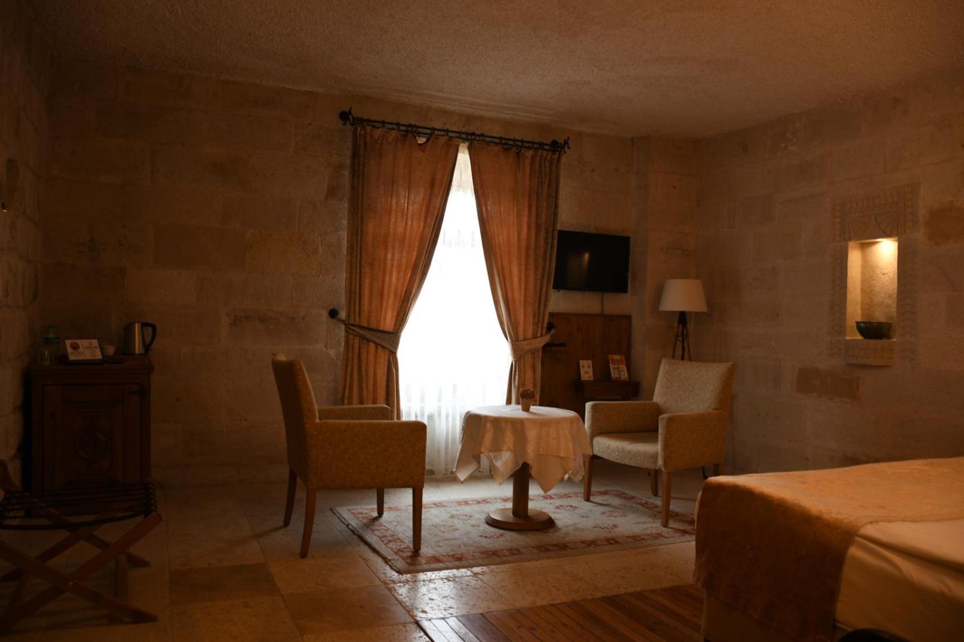 With free WiFi,rooms at Goreme Inn Hotel Only Adult come with oriental carpets, arched walls and wooden furniture. Each room has an LCD TV, minibar and teacoffee facilities.