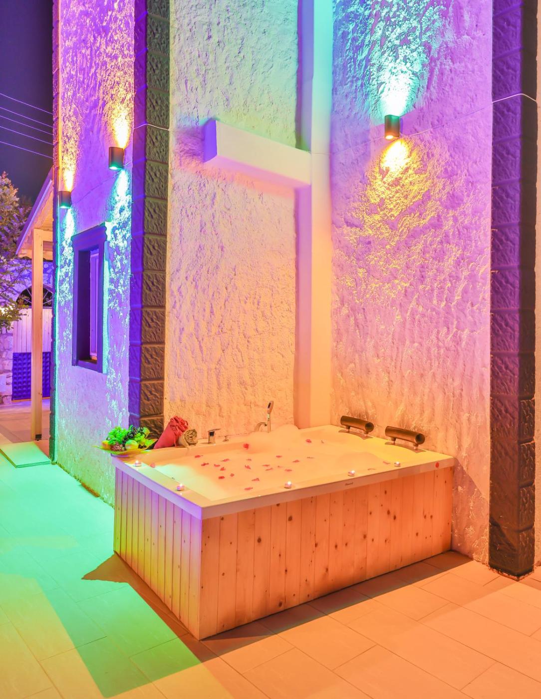 Featuring air-conditioned accommodation with a private pool, pool view and a patio, Villa Grando 2 is located in Kas. This property offers access to a balcony, free private parking and free WiFi. The villa has an outdoor fireplace and a hot tub.