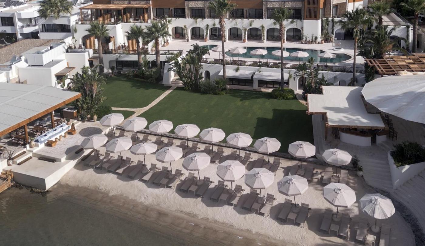 A private beach area on the Aegean shores, outdoor pool and a wide green garden with cushions, accompanied with panoramic sea views, constitute this hotel. There is a spa centre and free Wi-Fi.